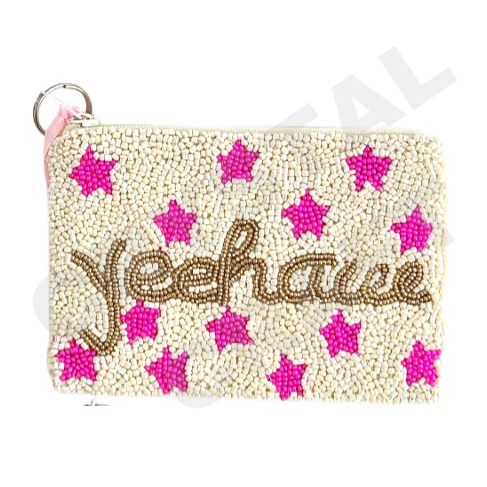 Yeehaw Star Coin Pouch Portefeuille en perles de rocaille personnalisé Beau cadeau de maman-Design coeurs pour filles