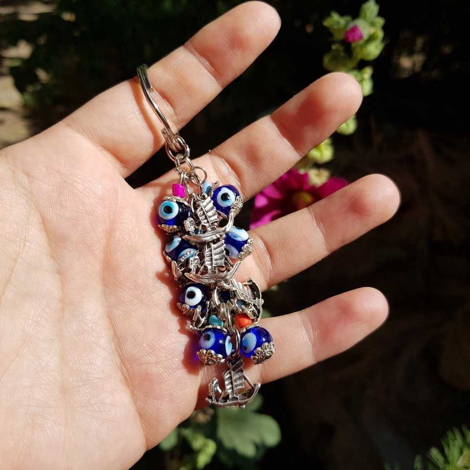 Yelkenli Figür-Cam Nazar Boncuğu Salkım Anahtarlık Premium Crystal Key Chains