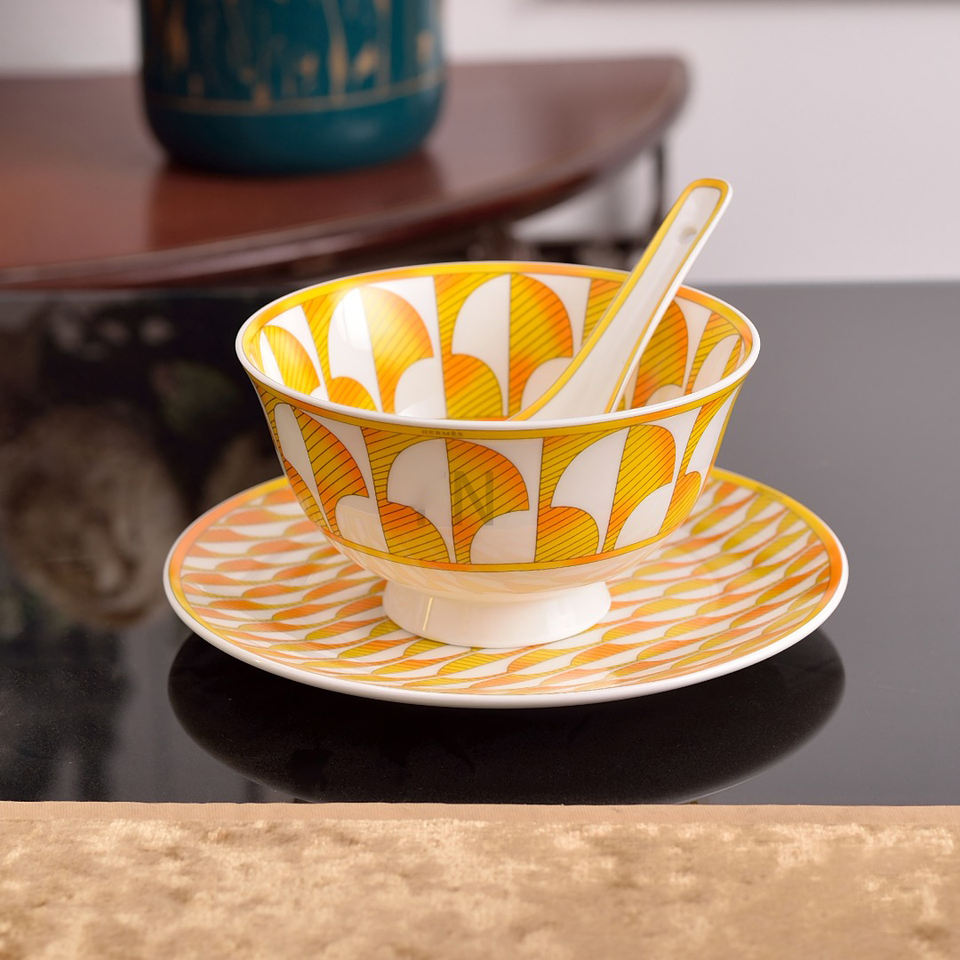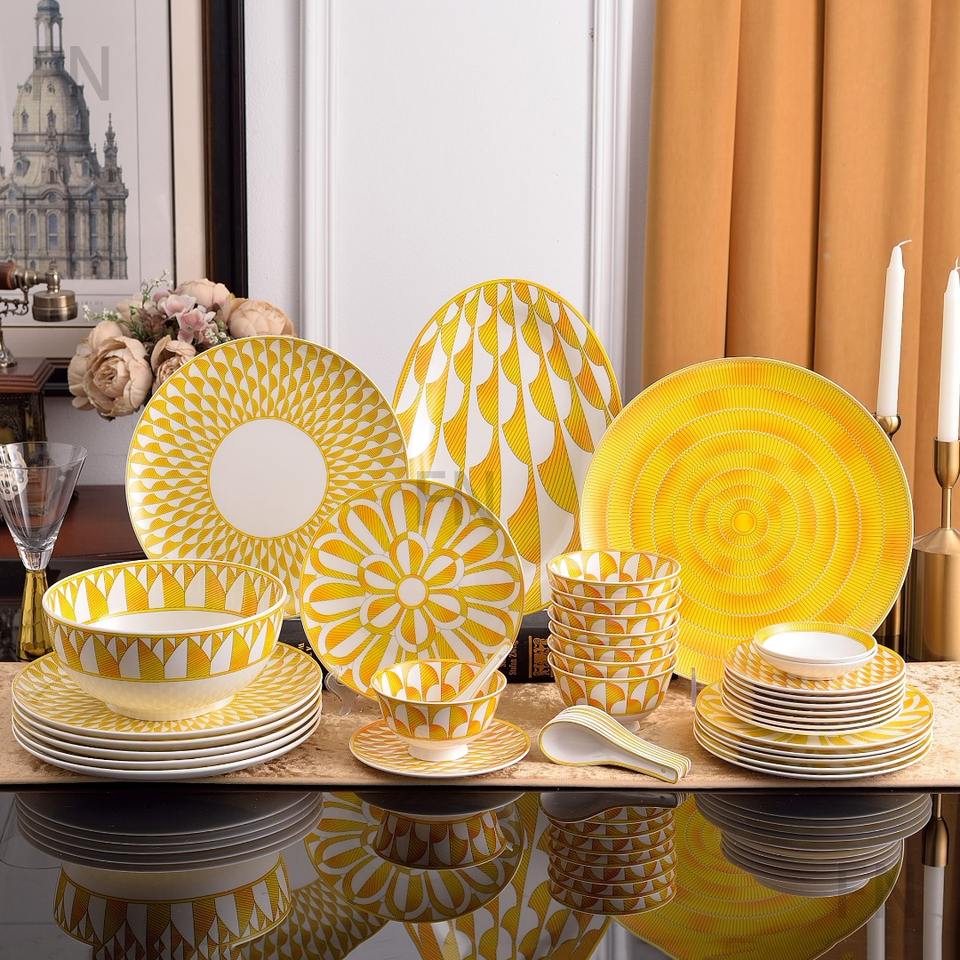 Assiette à dessert en porcelaine fine jaune 41 pièces, service de table exquis