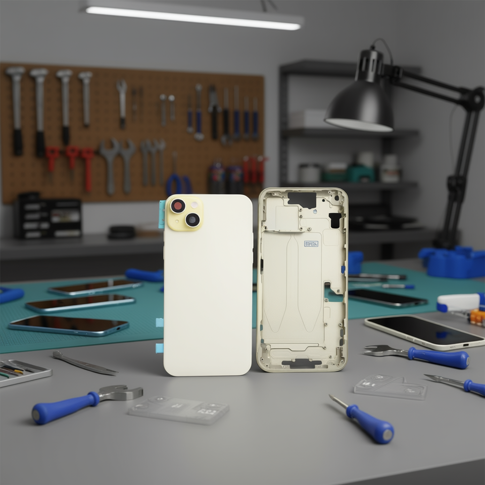 Boîtier intermédiaire en ABS jaune avec coque arrière pour téléphones mobiles 15 Plus