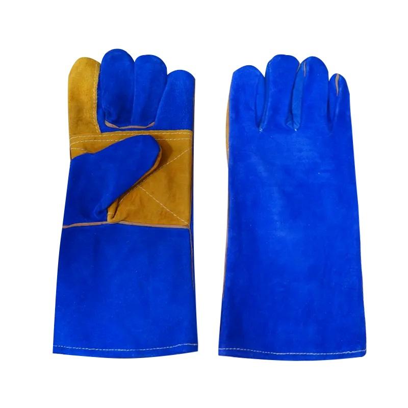 Gants de soudage en cuir fendu de couleur jaune et rouge Gants de soudage en gros sur mesure Gants de soudage résistants à la chaleur
