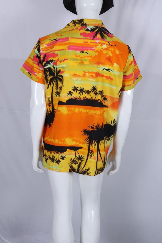 Jaune plage décontracté polyester Aloha polyester chemise hawaïenne respirant conception personnalisée chemises tissu coupe décontractée imprimé partout