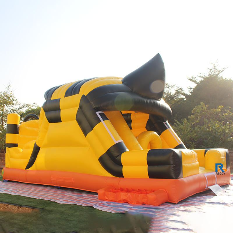 Parc d'obstacles gonflable commercial Thème Abeilles Jaunes avec toboggan et château gonflable