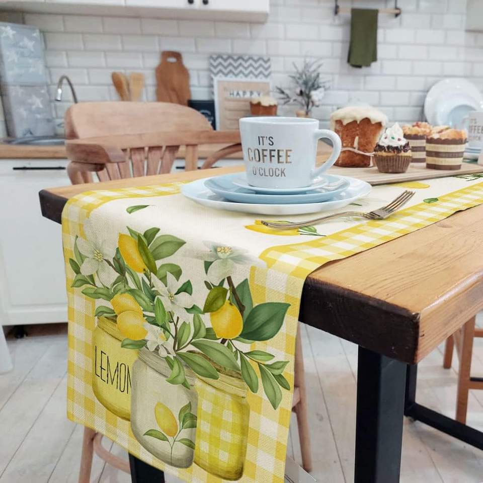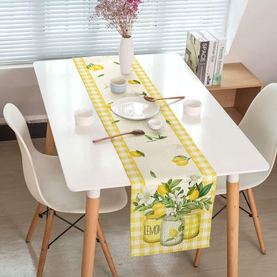 Jaune Buffalo Check Été Chemin De Table Citron Vase Conception pour Printemps Automne Halloween Ferme Rustique Cuisine Table À Manger Décor