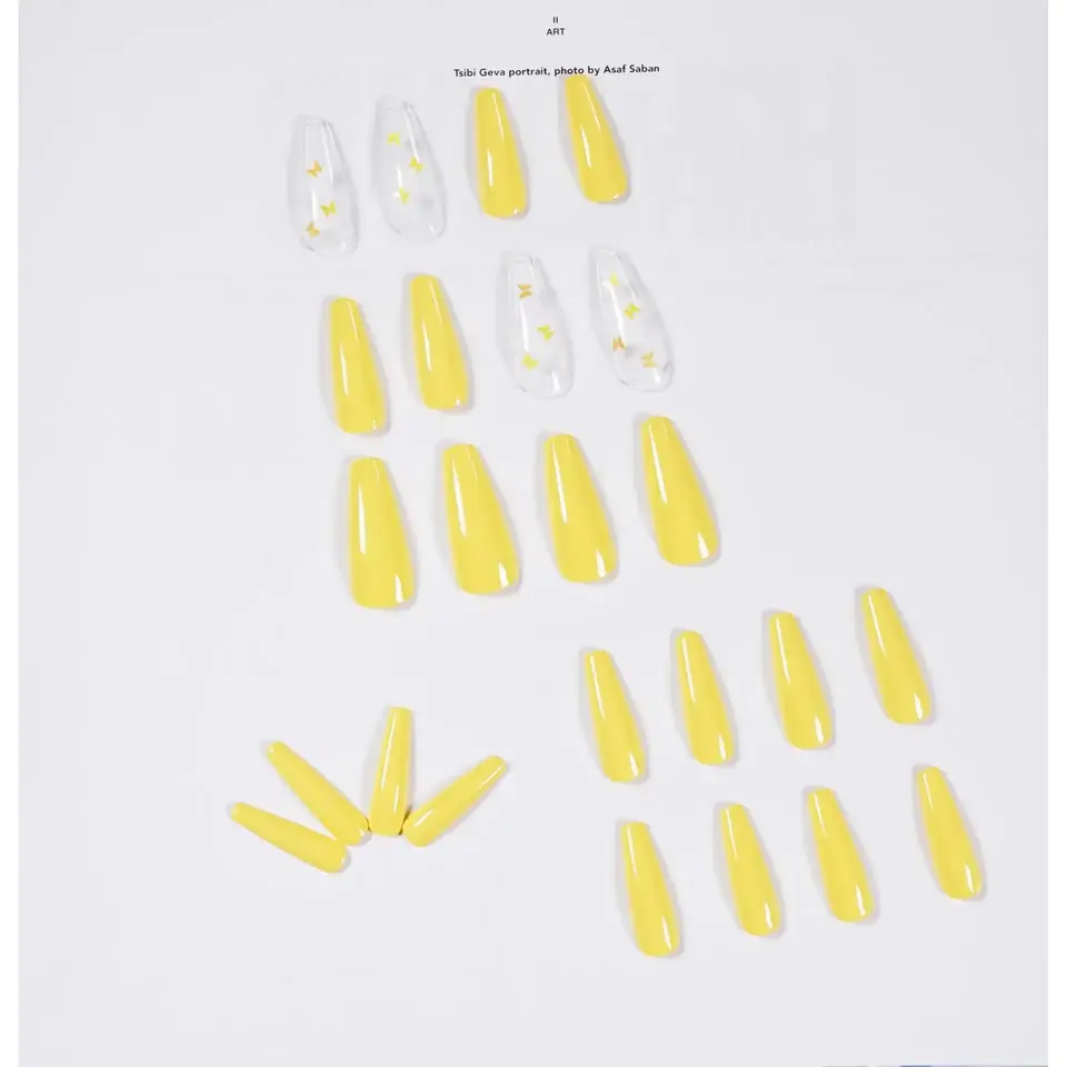 Ongles press-on imprimés papillon jaune