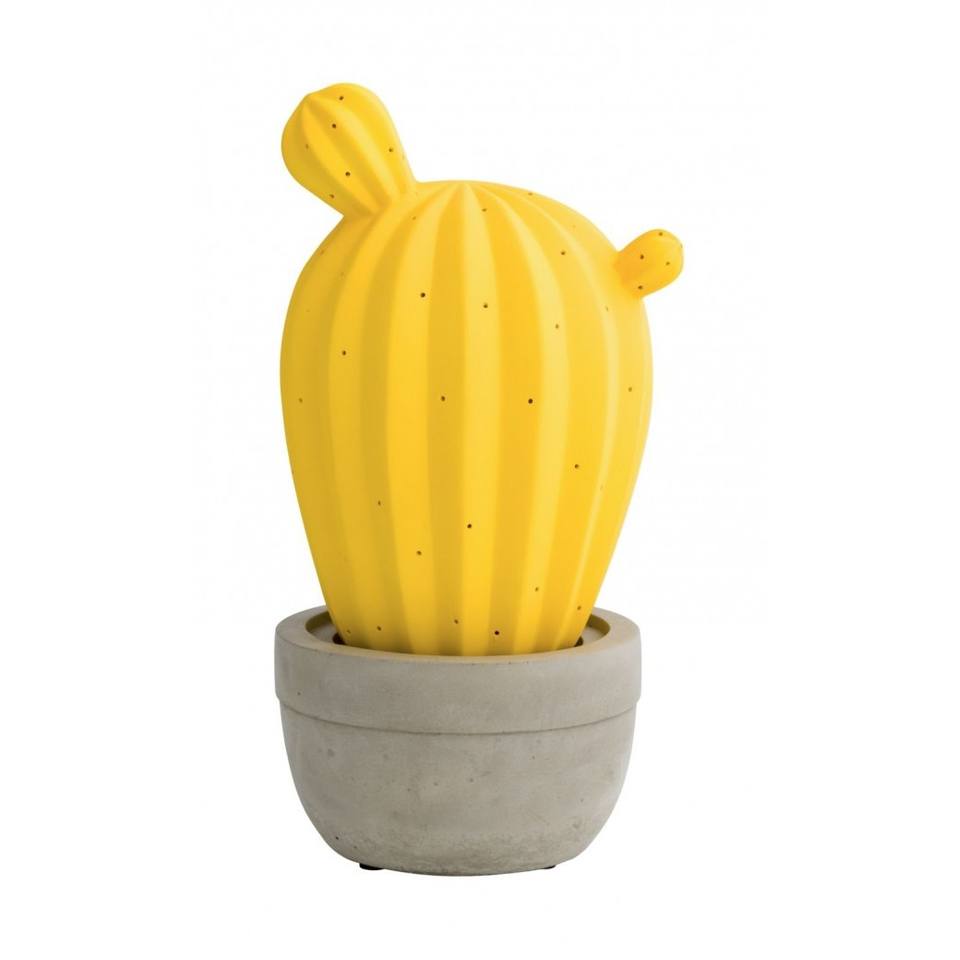 Lampe Cactus Jaune dans un Pot en Terre Cuite pour Décoration de Table