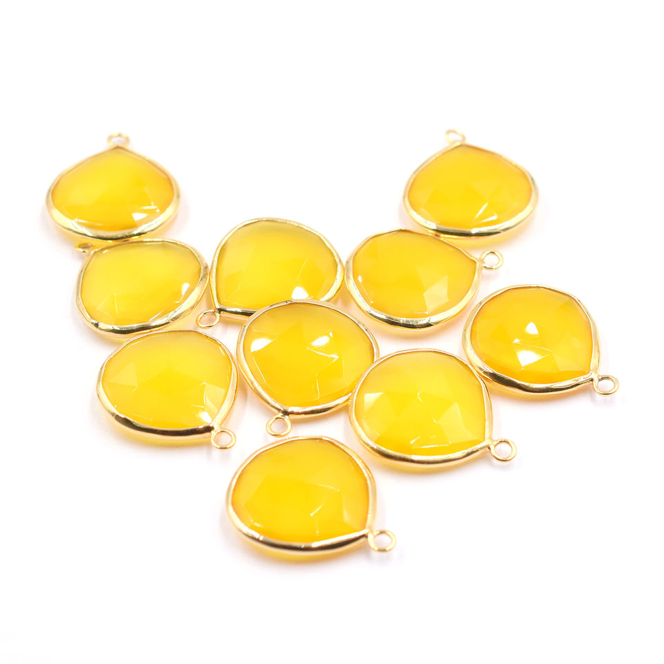 Stone Name:Yellow Chalcedony Heart Shape Silver Bezel Gold Plated Pendant