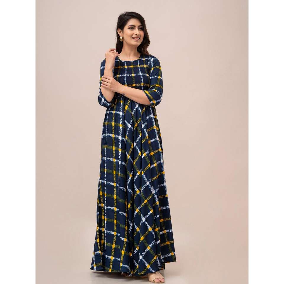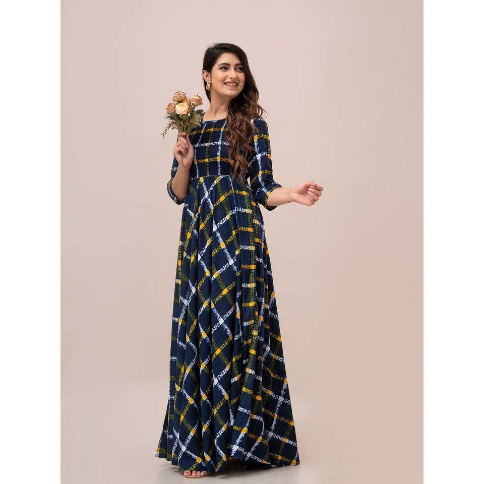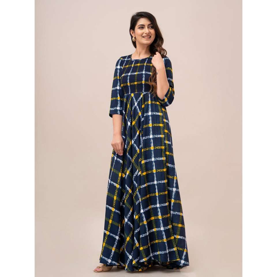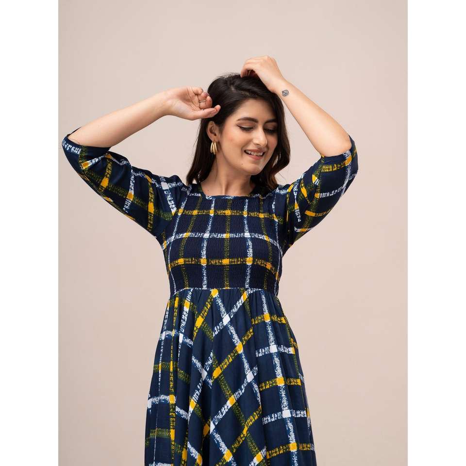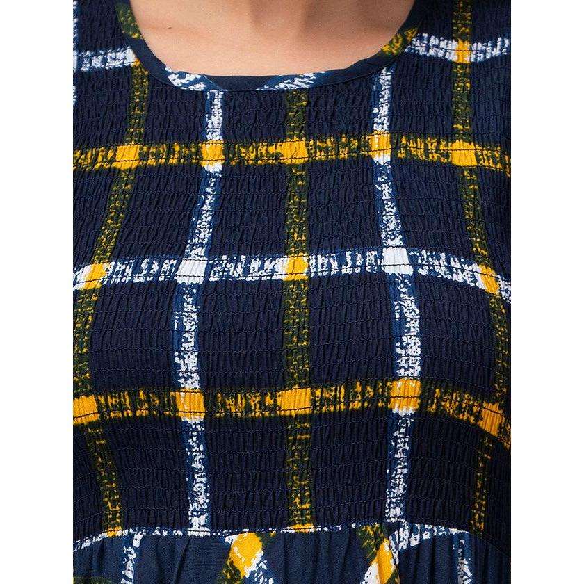Robe évasée et coupe maxi smockée à carreaux jaune