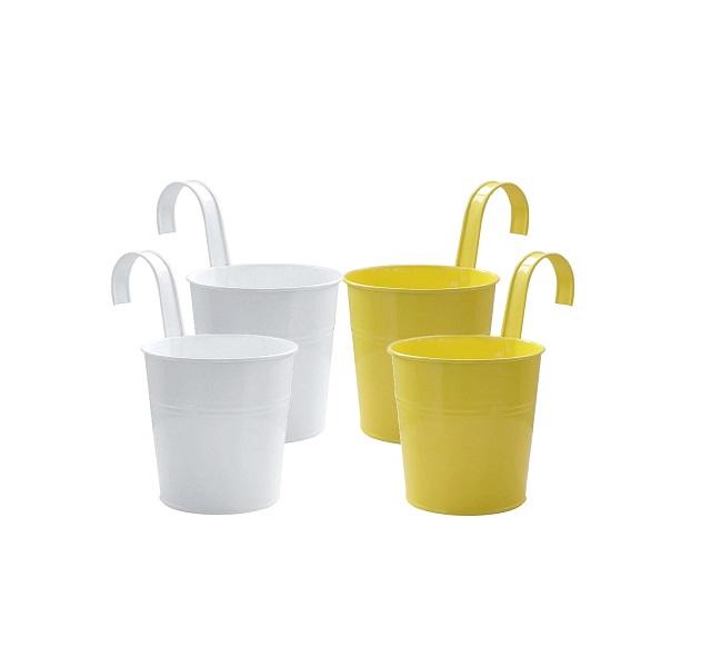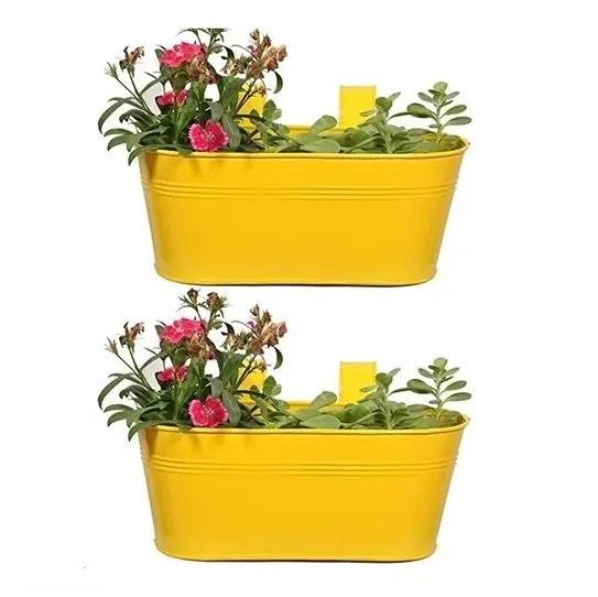 Jaune Enduit Balcon Décor Suspendu Fleur Planteur Garde-Corps Planteur Stand Seau Métal Fer Tenture Jardinière