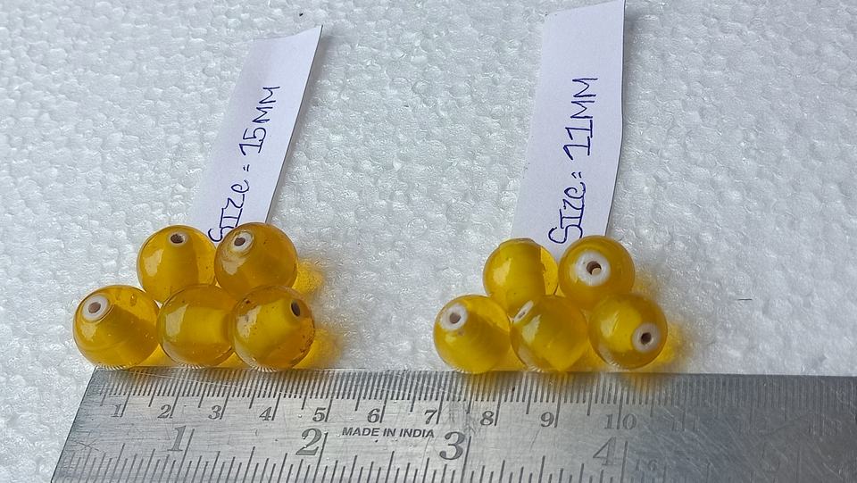 Yellow Coloured round White Heart Beads in Assorted Sizes from 8 mm Onwards for Jewelry Making