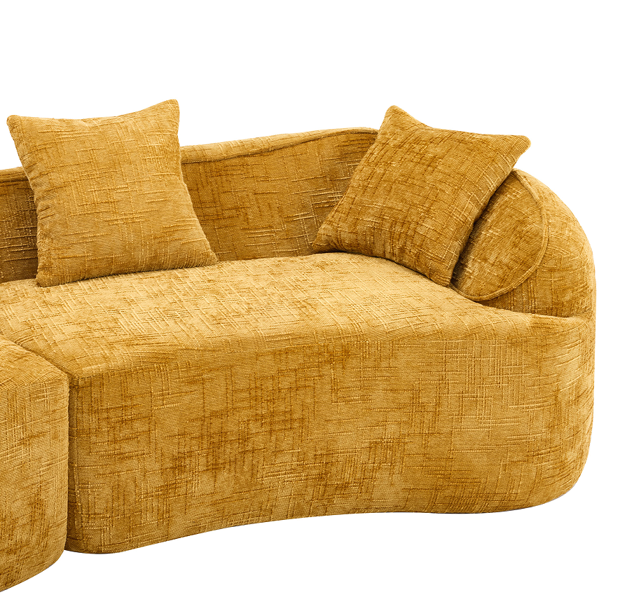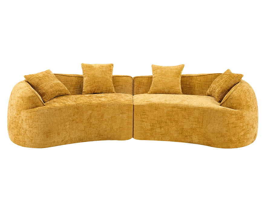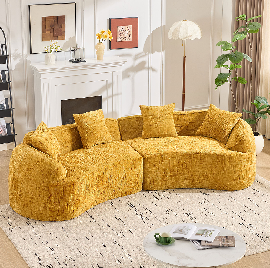 Ensemble de canapés modulaires jaunes courbés et compressés, design sectionnel moderne de style nordique avec rembourrage en éponge pour le confort du salon