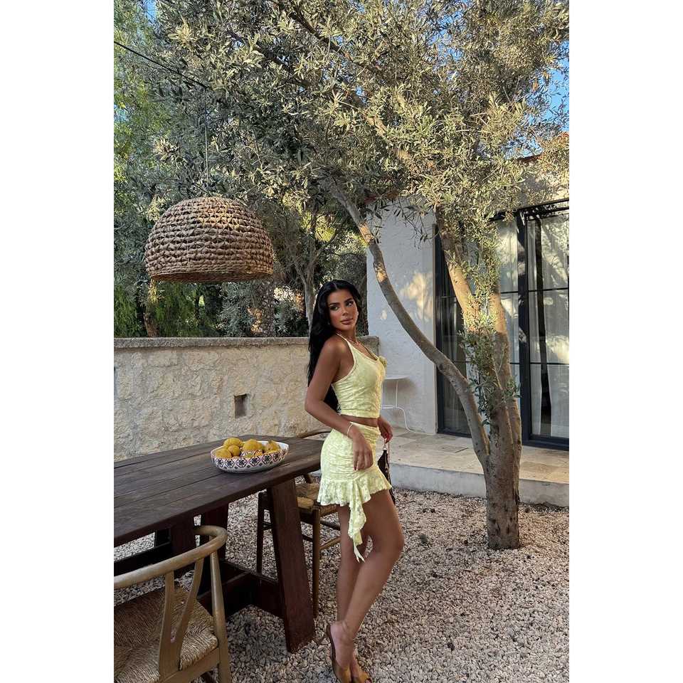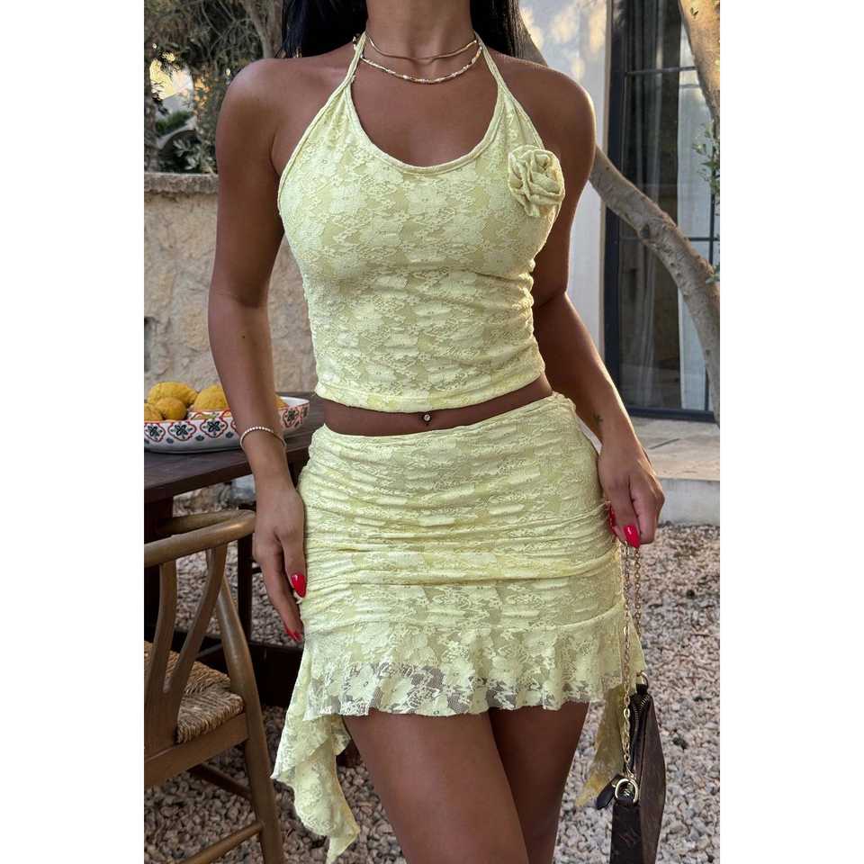 Ensemble de soutien-gorge avec détail de jupe en tulle, bretelles réglables et détail de bande de jambe