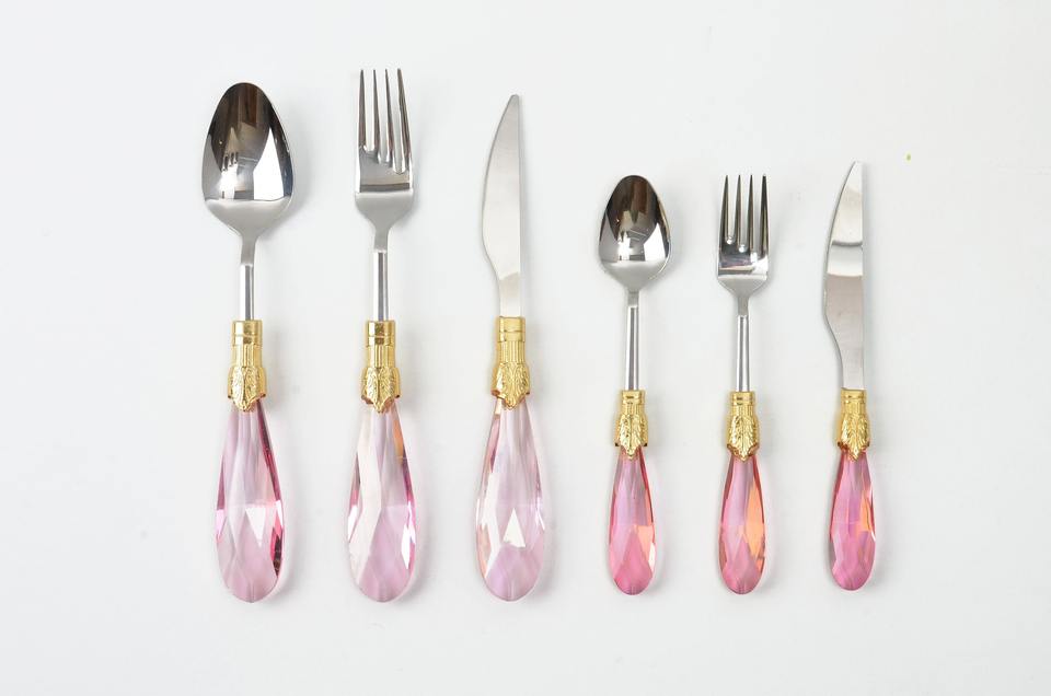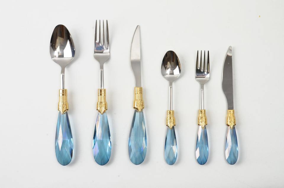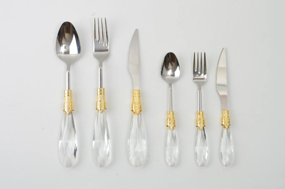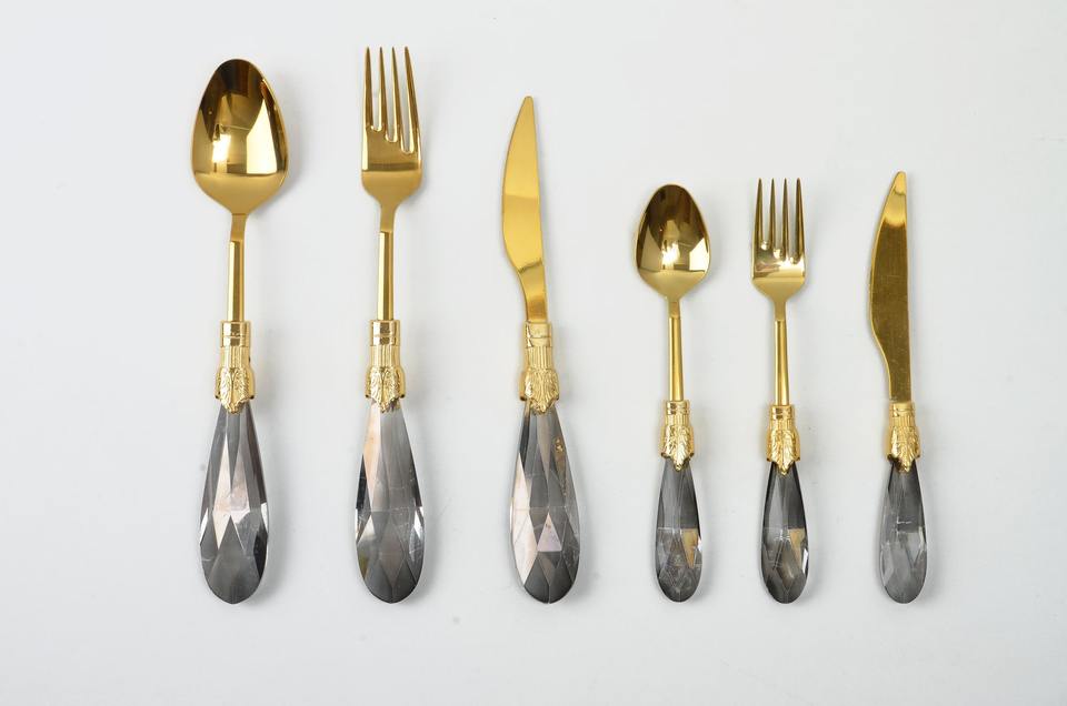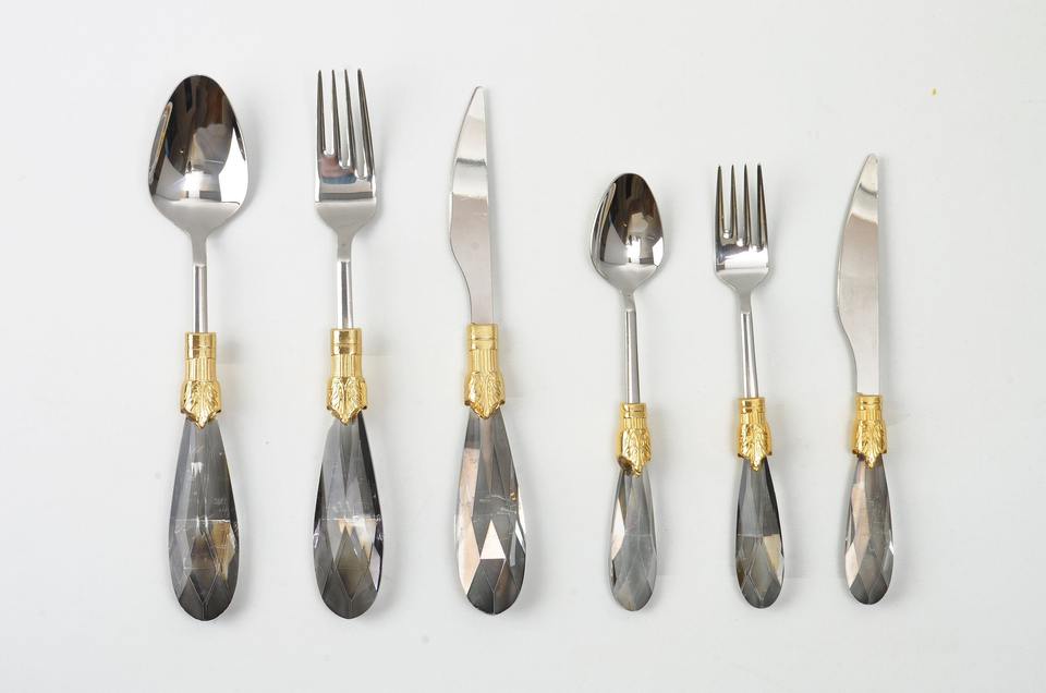 Ensemble de couverts à poignée en diamant jaune avec tête finie en argent pour mariage, salle à manger, cuisine, restaurant et fête