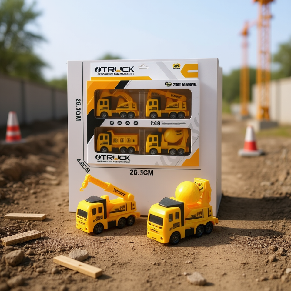 Ensemble de camions d'ingénierie jaunes 1:48, véhicule jouet en plastique à tirer en arrière pour enfants de 2 à 4 ans