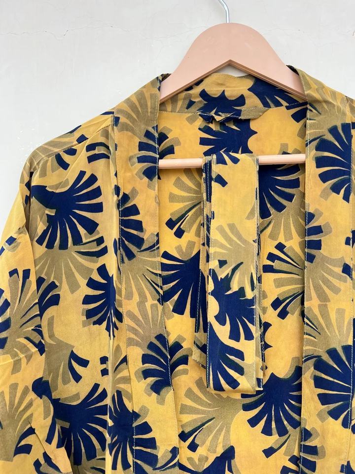 Yellow Floral Silk Vintage Recycled Kimono Anniversary Gift for Her for Summer Autumn & Spring Seasons