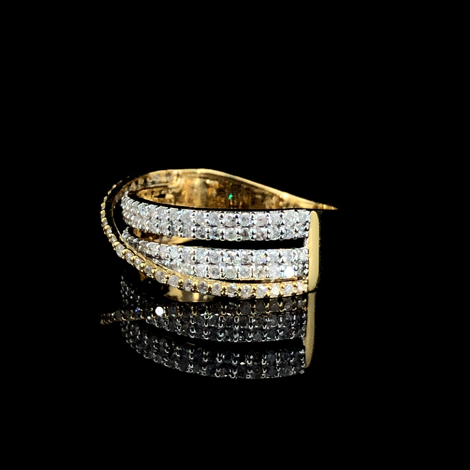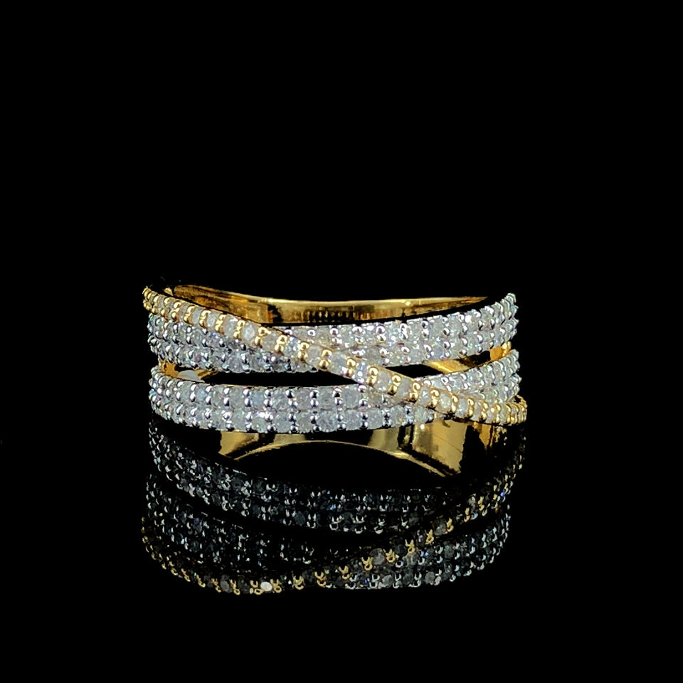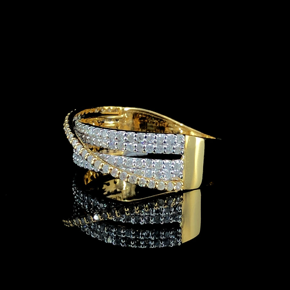 Bague élégante à plusieurs bandes en or jaune et diamant naturel Bijoux en diamant de luxe SI3-I1 à taille brillante Cadeau tendance pour elle
