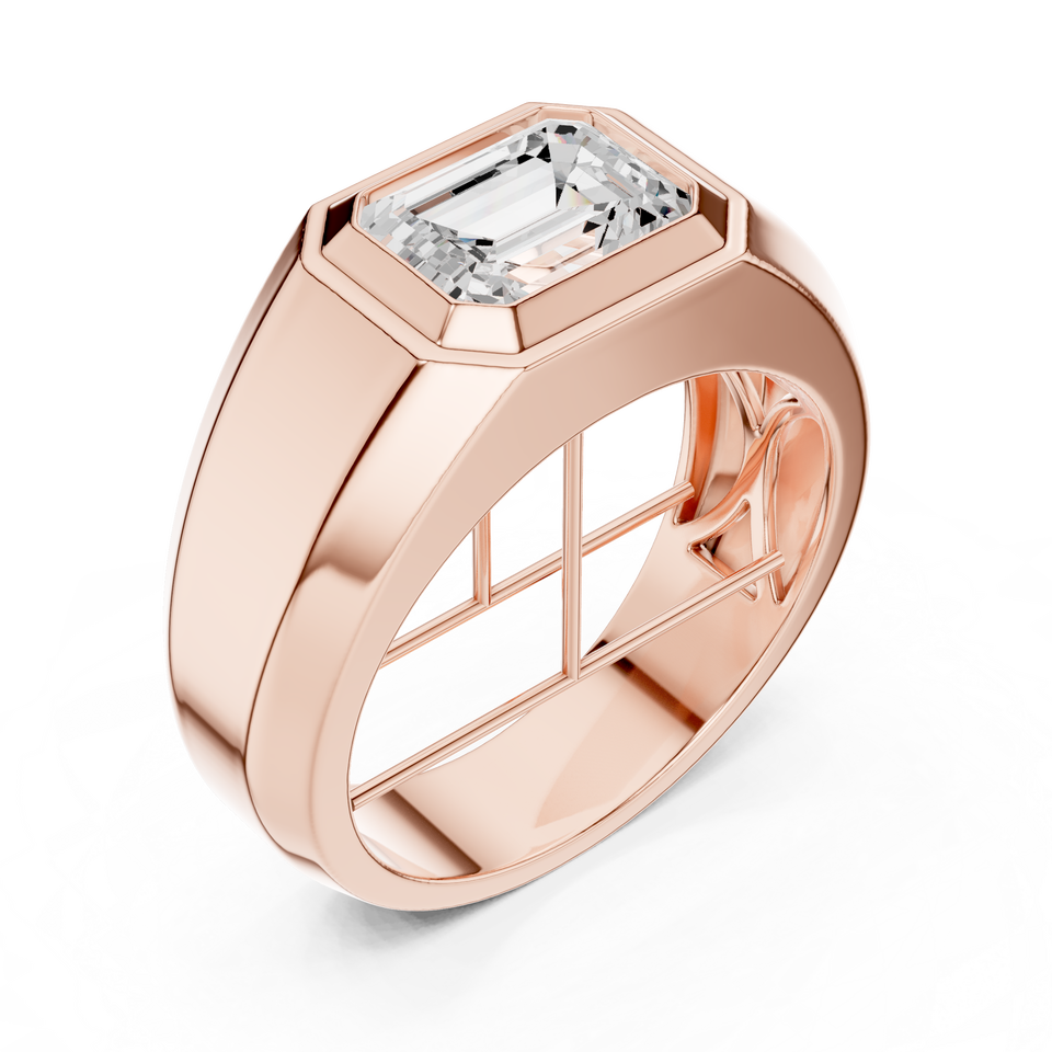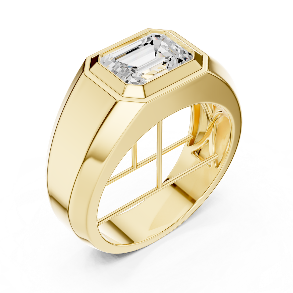 Bague signet solitaire pour homme en or jaune avec diamant créé en laboratoire – Large alliance de luxe pour marié, bijoux en diamant