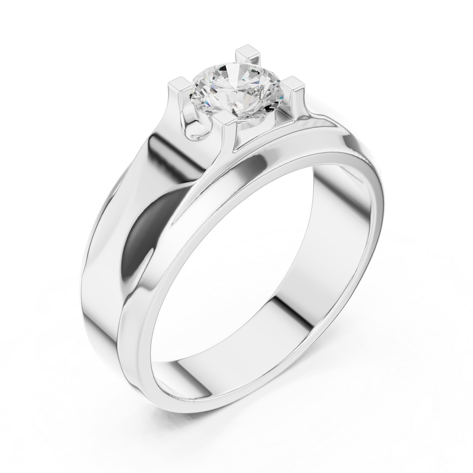 Bague solitaire pour homme en or jaune avec diamant de laboratoire – Bague de fiançailles moderne à large bande pour marié, bijoux en diamant