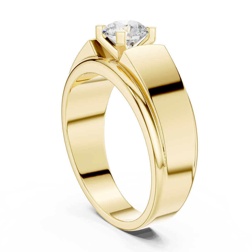 Bague solitaire pour homme en or jaune avec diamant cultivé en laboratoire – Bague de fiançailles moderne et luxueuse pour marié