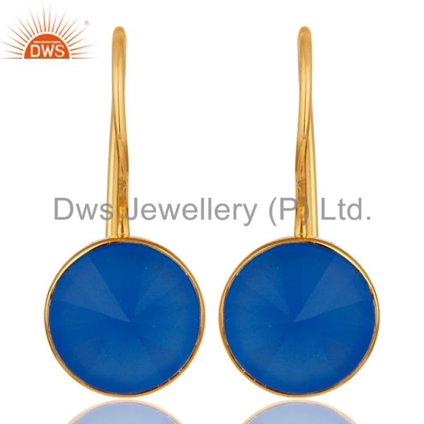 Boucle d'oreille en argent sterling plaqué or jaune calcédoine bleue Fournisseur de bijoux de créateur Collection classique