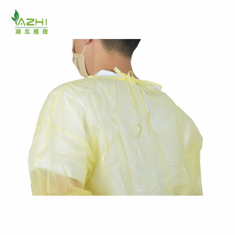 Robe d'isolation jaune PP 25g blouse de laboratoire de travail cousue cravate d'étanchéité sur le cou et le dos robe vister manchette élastique