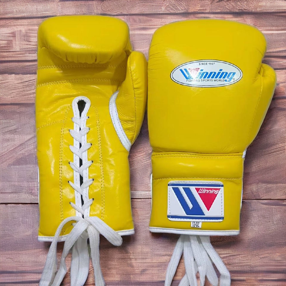 Gants de boxe en cuir jaune à lacets, design OEM, légers, avec sangle de poignet réglable, imperméables, MMA, kickboxing, sanda
