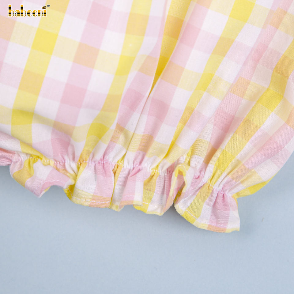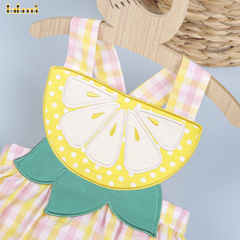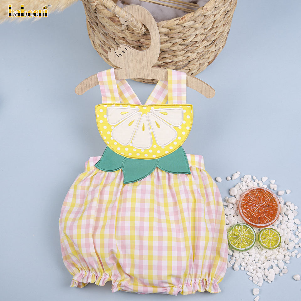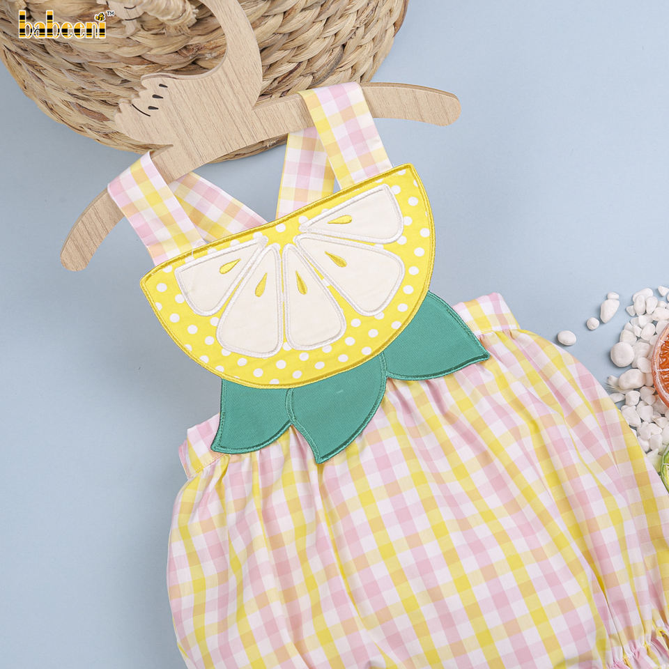 Jaune Citron Applique Bébé Bulle 100% Coton Biologique OEM ODM Smocké Barboteuse pour Girls-BB2730
