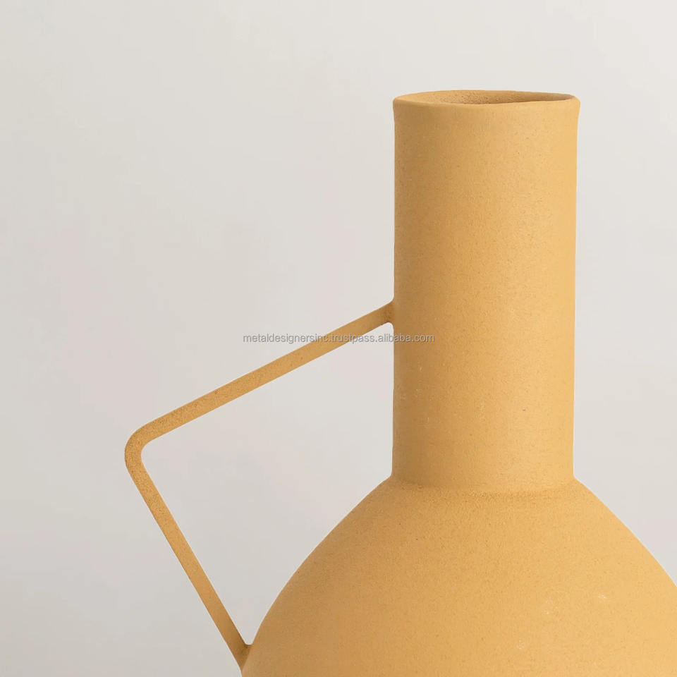 Vases à fleurs jaunes mats avec poignée look pot floral pour sol et table décoration maison et jardin