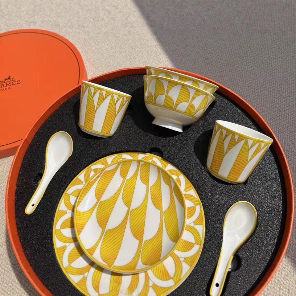 Service de table en porcelaine jaune, écologique et sûr pour les hôtels, les restaurants, la maison, les dîners, le camping, vintage, moderne, classique, personnalisable