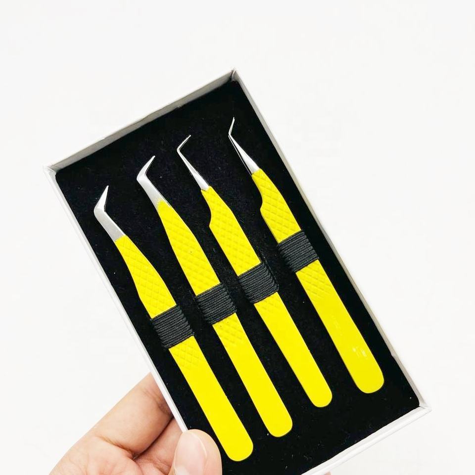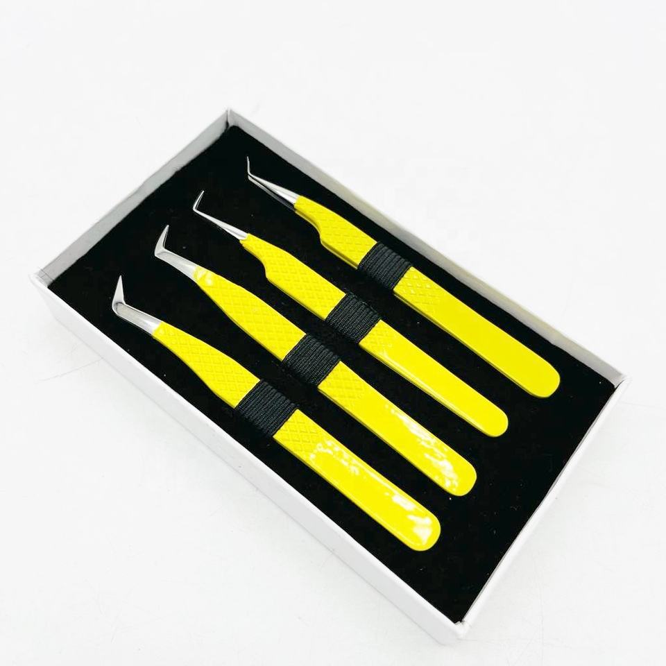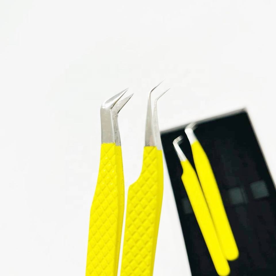 Pince à épiler professionnelle en acier inoxydable jaune thermolaqué à pointe fine pour extensions de cils – Prix de gros
