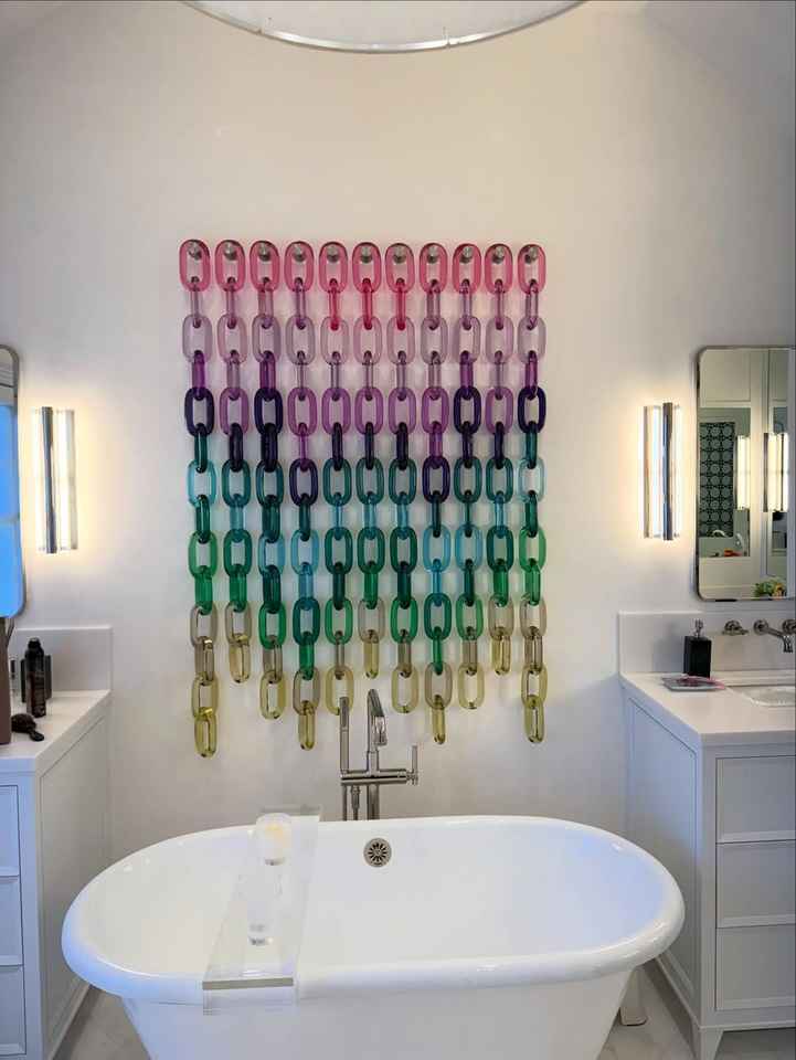 Décoration murale en chaîne de résine jaune, sculpture en boucle en matériau solide, accent de design d'intérieur vertical, pièce de style pour la décoration de pièce