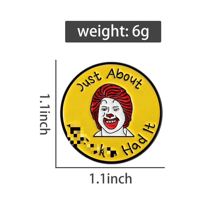 Broche ronde jaune amusante de clown, badge amusant, lettres personnalisées « Just About Had It » pour travailleurs exaspérés, épingle de revers en émail pour femme