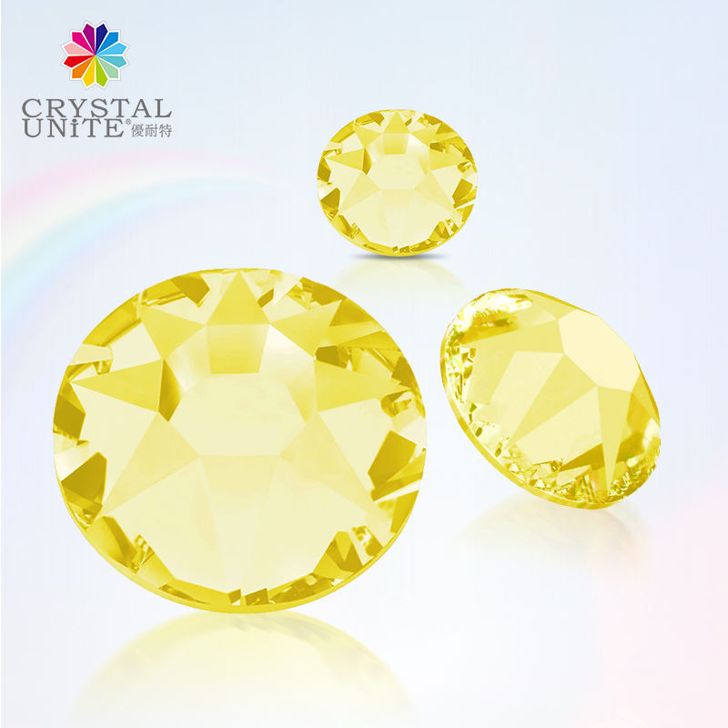 Strass thermocollants Série Jaune, 16 facettes de qualité supérieure avec éclat diamanté pour vêtements et accessoires haut de gamme