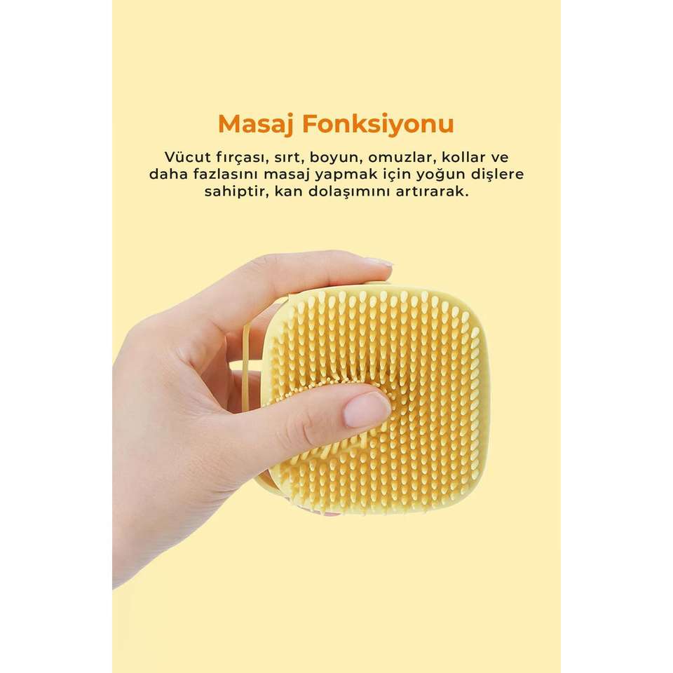 Yellow Silicone Feather Collector Pet Washing Brush with Shampoo Dispenser for Cleaning & Bathing Pets Made in TR