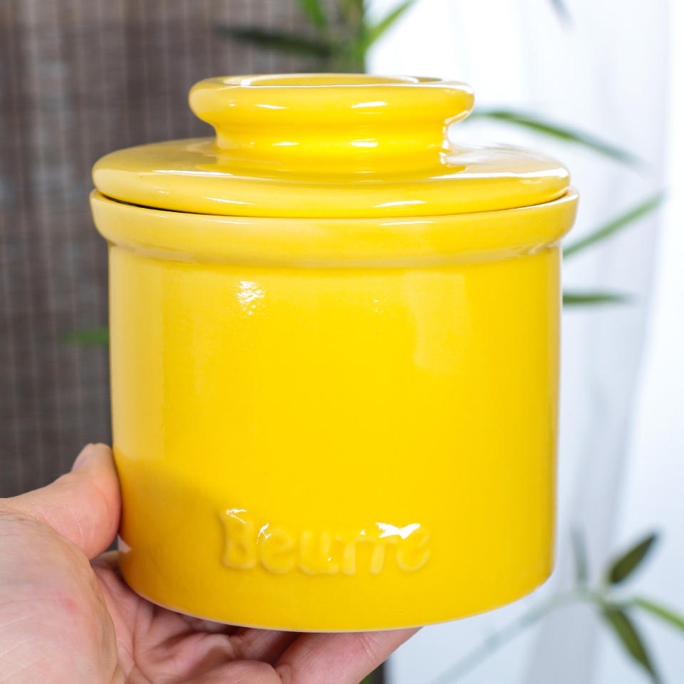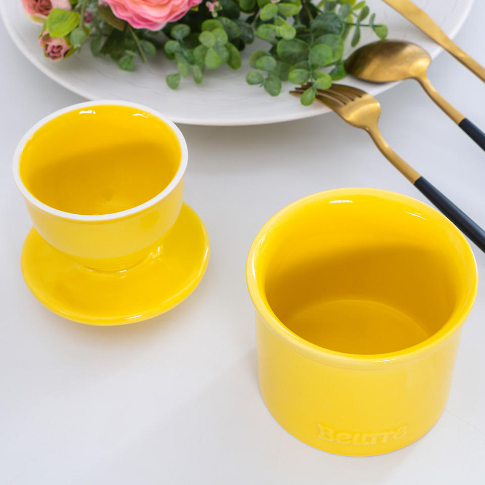 Plat à beurre français en céramique jaune, Design Simple, personnalisé