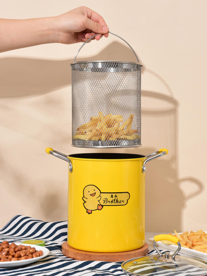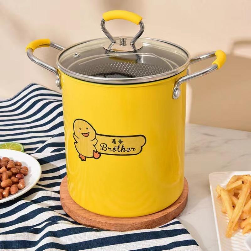 Marmite de cuisson jaune en acier avec panier de drainage pour spaghetti et asperges