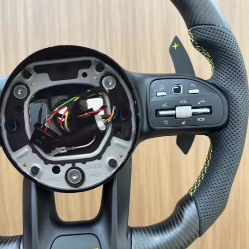 Volant en fibre de carbone mate avec bandes jaunes pour Mercedes Benz AMG GT W211 W222 W221 W204 W222 W205 W212