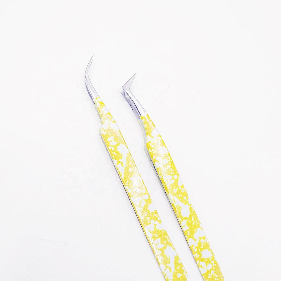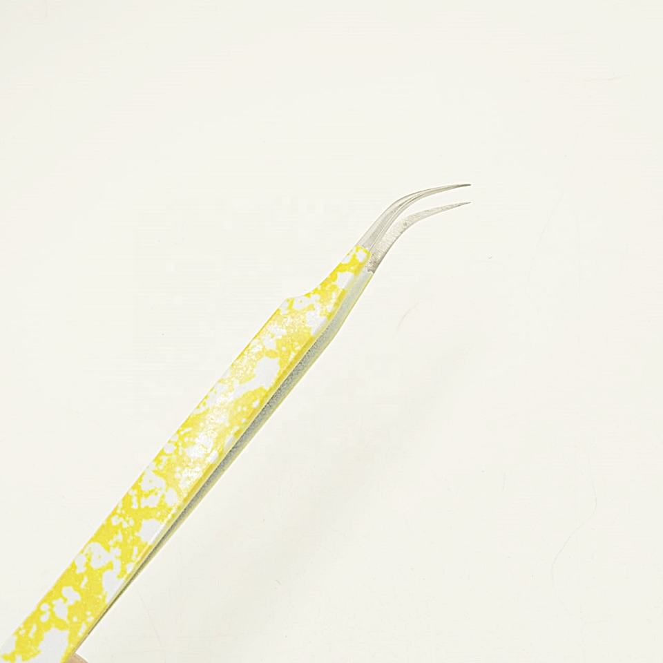 Pince à cils incurvée de haute qualité acier durable jaune et blanc enduit pince à cils en acier durable prix de gros