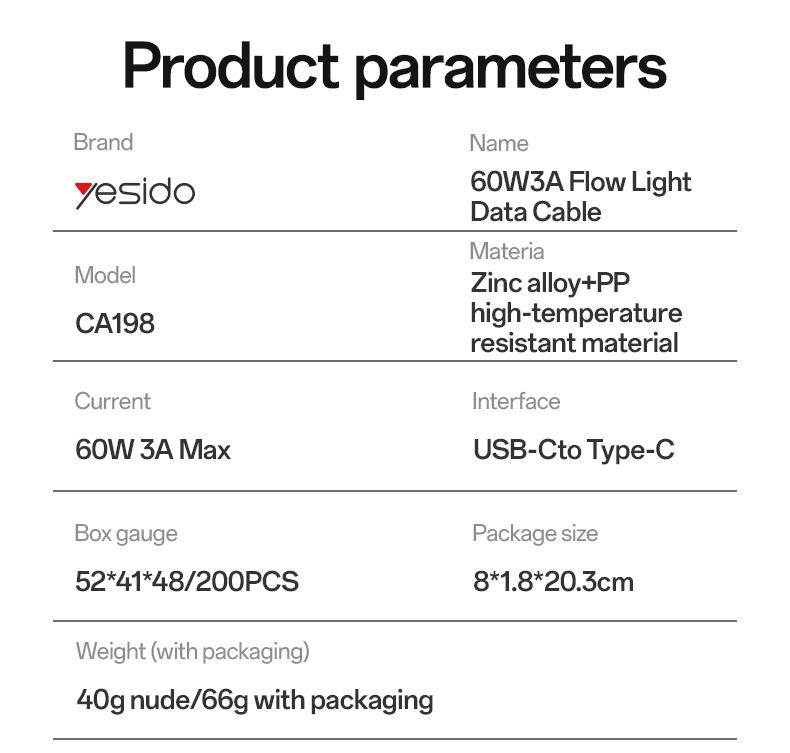 60W 3A Flow Light Data Cable
