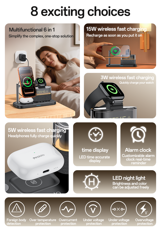 Nom du produit:Chargeur sans fil de bureau 6-en-1