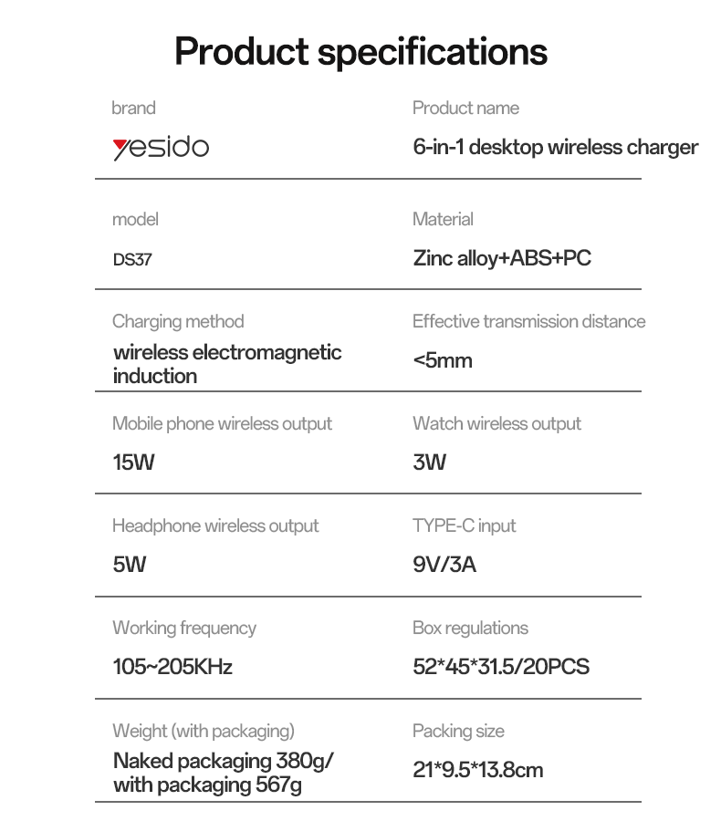 Nom du produit:Chargeur sans fil de bureau 6-en-1