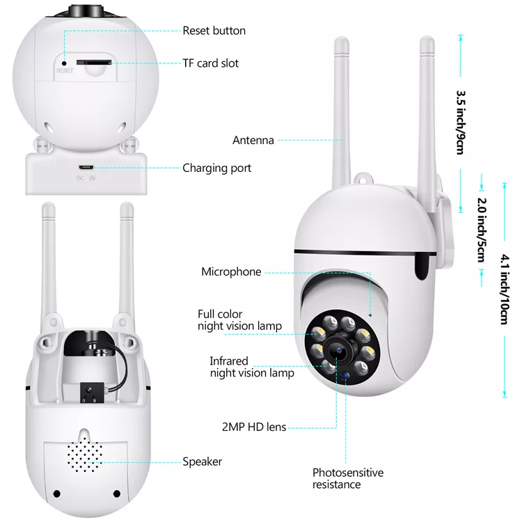 Grand Angle, Audio bidirectionnel, PAN-TILT, Vision nocturne, RESET, Micro intégré, Prise en charge de la visualisation à distance mobileFonction