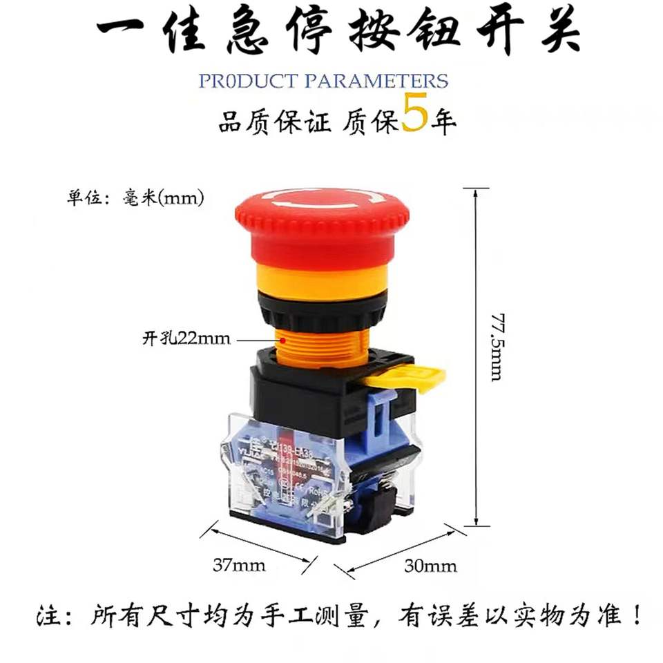Bouton d'arrêt d'urgence autobloquant Yijia LA38-11ZS 22mm, interrupteur à tête de champignon en laiton, fonction marche/arrêt, niveau IP67