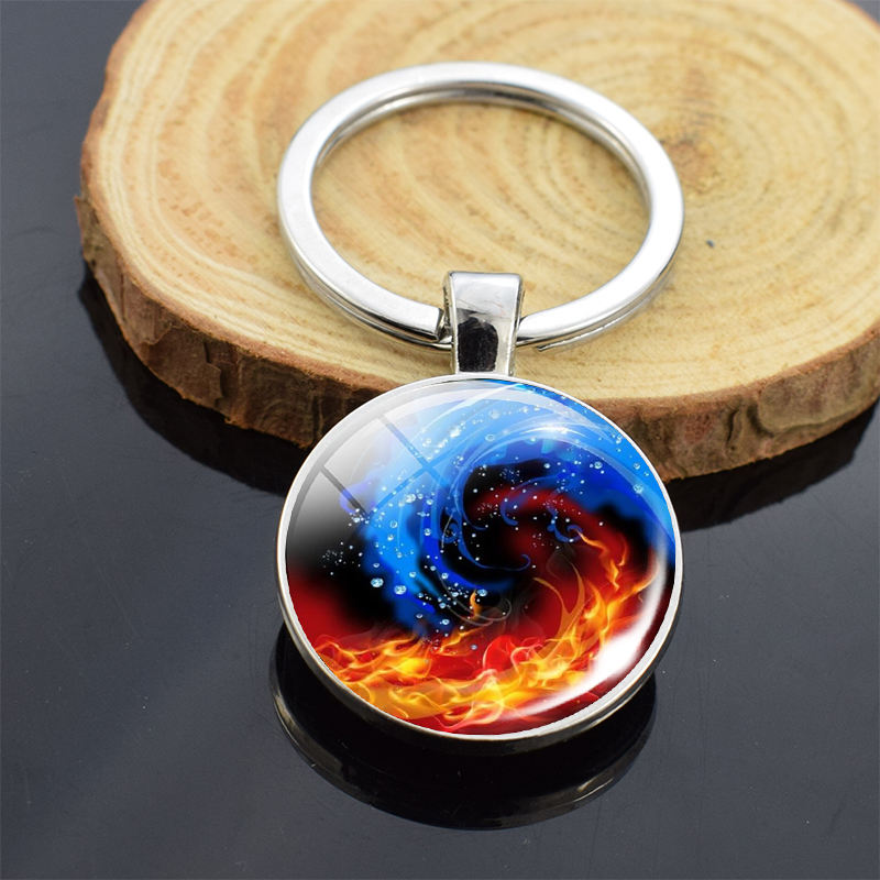 Yin Yang Porte-clés Yin Yang Chat Double Face En Verre Cabochon Bijoux Feu Yin Yang Arbre de Vie Porte-clés