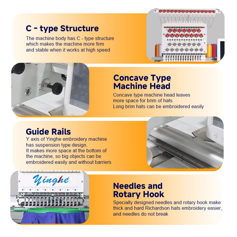Machine à coudre à broderie à capuchon plat Yinghe 1 tête multi-aiguilles avec logiciel de conception Machine à broder informatisée à 1 tête