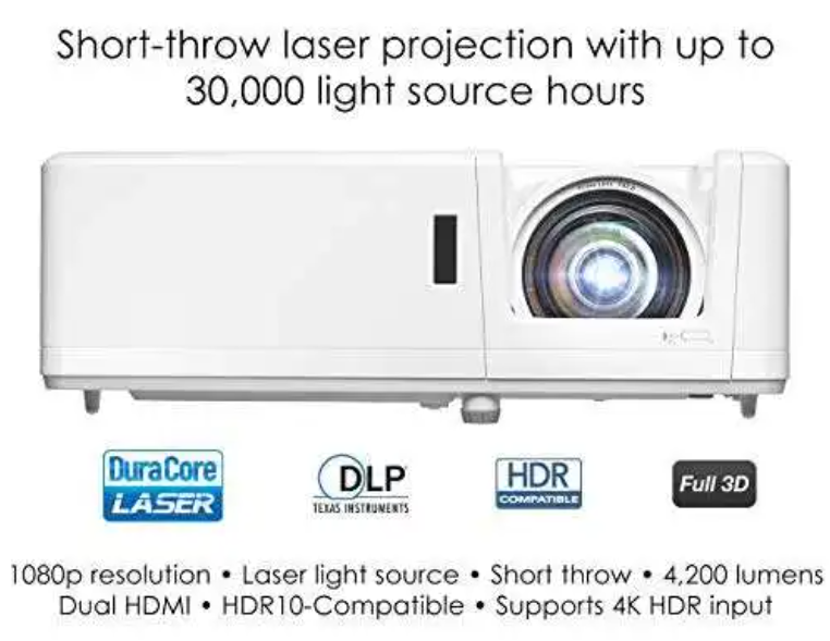 Projecteur Yinzam Optoma GT1090HDR Laser à courte portée | Entrée HDR 4K | Fonctionnement fiable sans lampe | DLP |