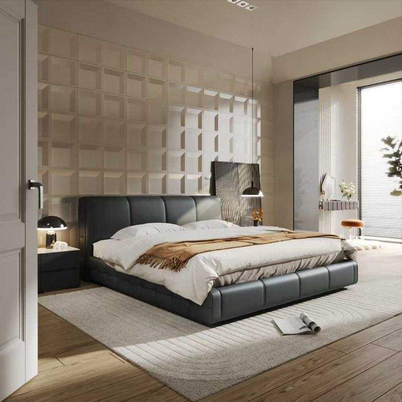 Nom du produit:Lit double à carreaux en cuir