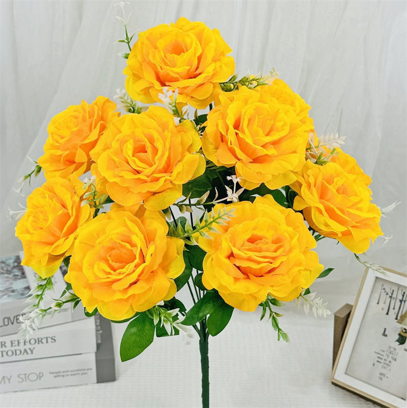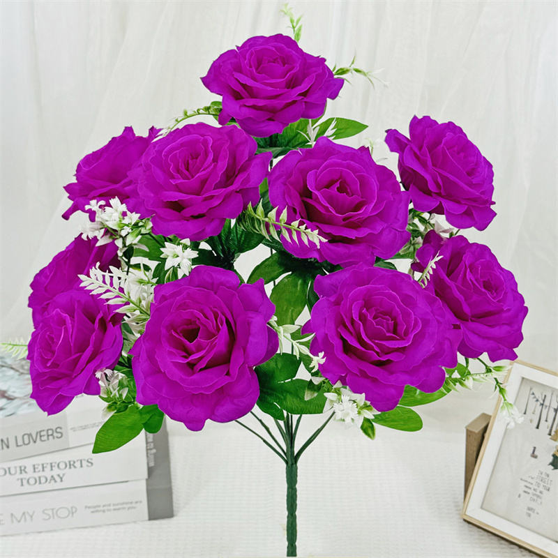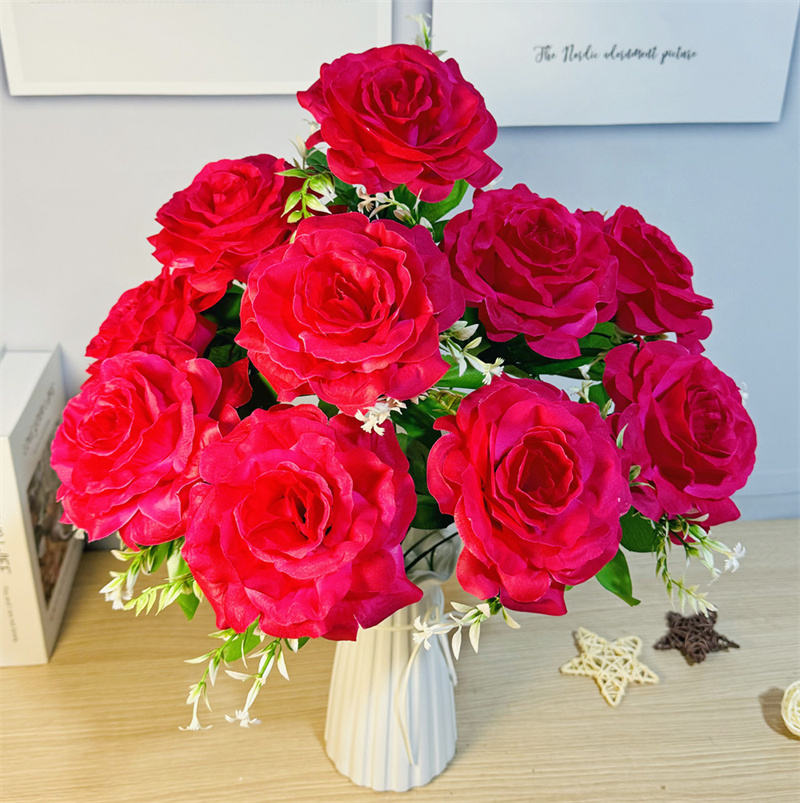 Yiwu Pas Cher Personnalisé Faux Rose Bush Big 10 Têtes Fleurs Artificielles Rose Roses Bouquet