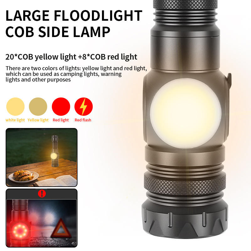 Lampe torche LED Yiwu rechargeable 18650 avec affichage numérique, mode SOS, haute intensité, longue portée
