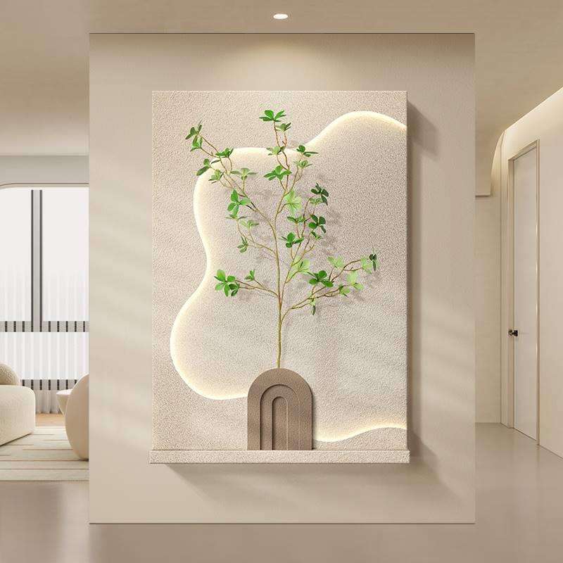 Yiwu original crème style simulation plante verte salon peinture murale entrée LED peinture décorative peinture suspendue